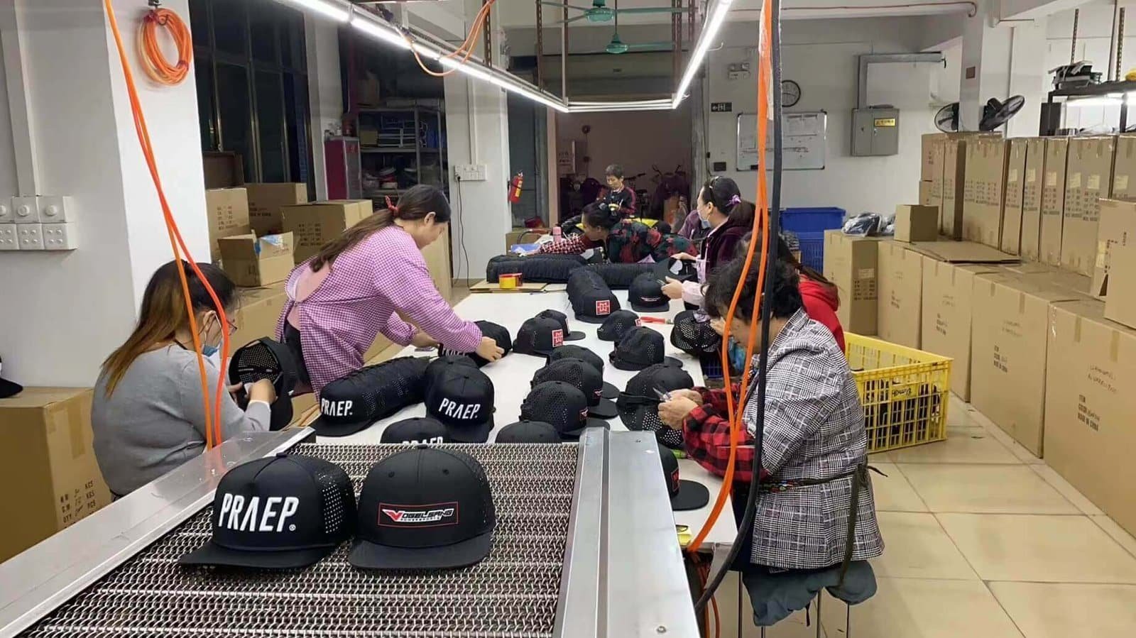 Our factory covers an area of 5500 square meters, with 300 workers in the workshop and a daily output of 10k caps. We can design about 55 different designs per day.